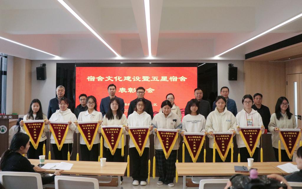 会上,龙门书院相关负责人宣读了《龙门书院二号院关于表彰第一期“五星宿舍”的决定》。与会领导分别为受表彰的宿舍成员颁发荣誉证书。十佳五星宿舍代表李欣怡、张贝贝分别从“红色之星、安全之星、文明之星、学习之星及和谐之星”五个角度作交流分享,全方位展示了宿舍成员在思想、学习和生活等方面的卓越表现。
