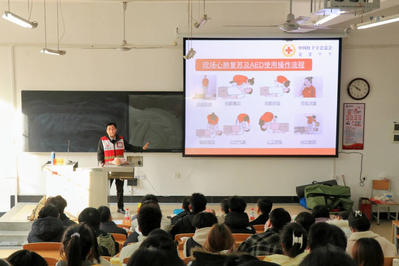 为进一步提升师生应急救护水平,扩充应急救护队伍,12月7日,我校联合洛阳市红十字会在商学院A5-108举办“满天星”大学生生命守护计划红十字救护员培训班。洛阳市红十字会应急救护培训中心主任杨振亚为培训班学员授课,来自书院社区的师生志愿者代表80人参加培训。