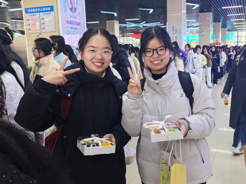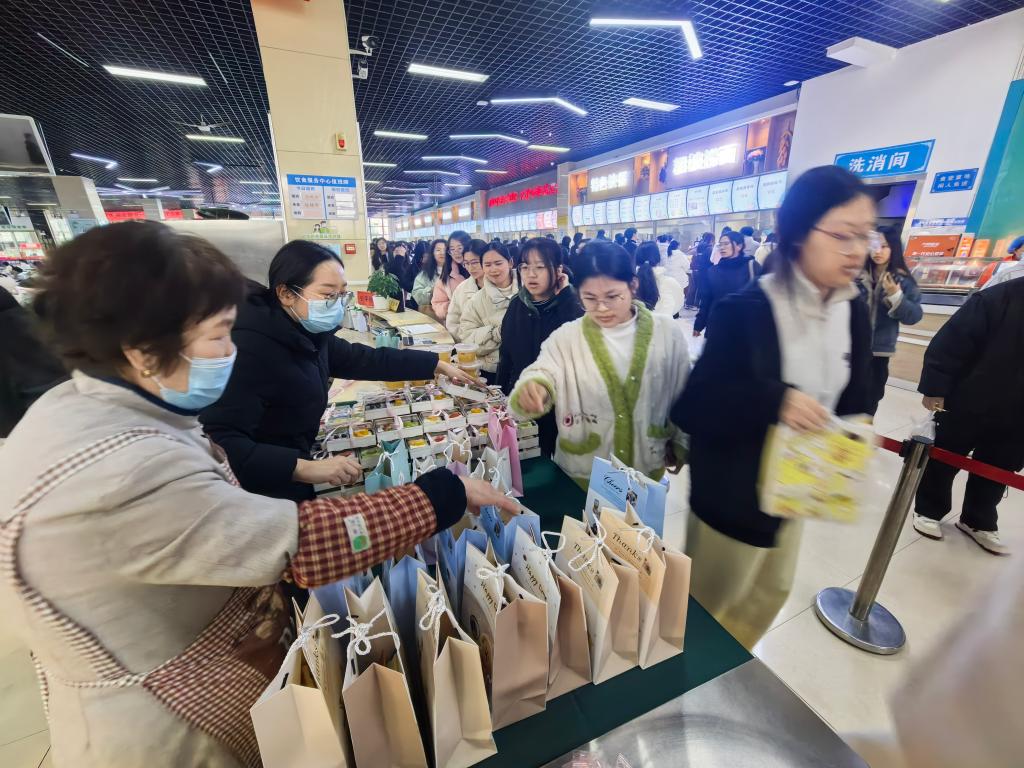 活动当天,公司下属餐厅在就餐区设置服务点,提供由优质银耳、红枣等食材熬制的养生粥,兼具健康与美味。同步发放的“洛师印象”主题伴手礼内含定制校徽笔记本、校园风景钥匙扣等文创产品,巧妙融入学校标志性元素。此外,桃园生活服务广场推出了“花开如你,邂逅最美的自己”活动,为节日增添别样趣味。现场设置打卡墙并发放鲜花,以芬芳传递节日祝福。活动还特别设计“集印章卡牌”互动环节,学生集齐印章可兑换专属优惠。