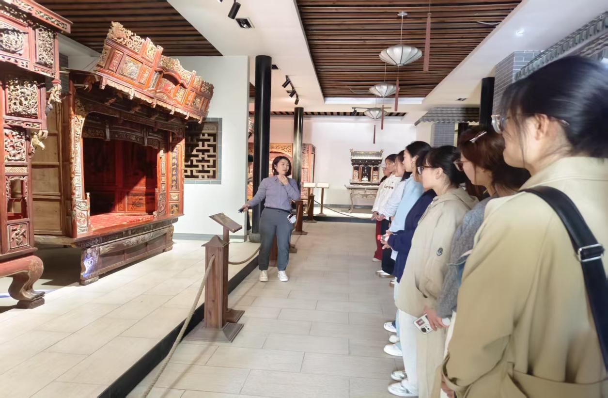 洛阳市古典红木家具博物馆馆内展品以明清、民国传统红木家具和新古典红木家具为主,馆藏家具珍品千余件,完整呈现了从明代简约素雅、清代精雕细琢到民国中西交融的工艺美学流变。在专业讲解员的引导下,学员们细致观摩榫卯结构、雕刻技法等传统工艺细节,深入了解红木家具背后“天人合一”的设计理念与精益求精的工匠精神,探索商业文化发展的影响因子。