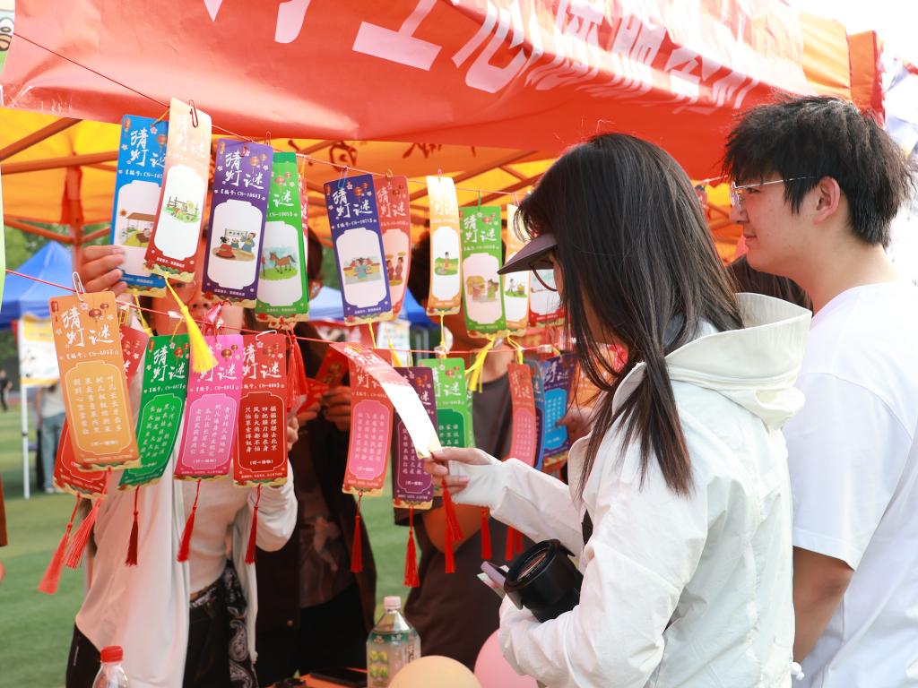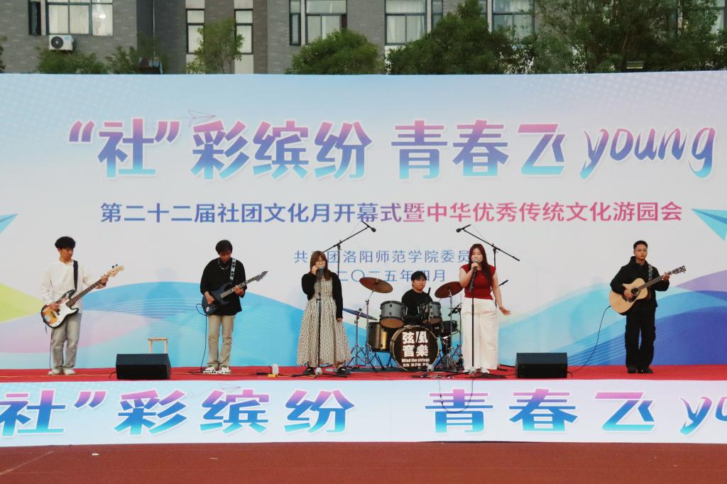 开幕式在音乐之声吉他社带来的歌曲《我的未来式》中拉开帷幕。Shining hope舞社的街舞动感十足;大学生朗诵艺术团在抑扬顿挫间带领观众领略中华诗词之美;黑元素动漫社以轻盈舞步与华美元素演绎出浪漫唯美的东方幻想;重竞技社团将传统舞狮与现代舞蹈巧妙结合;河洛剧社的小品诙谐幽默、妙趣横生;梨园社表演的豫剧《穆桂英挂帅》用铿锵有力的唱腔展现了巾帼英雄的豪迈气概;华夏霓裳的舞蹈勾勒出千年文化的绚丽画卷;Keep Dancing悦舞社以柔美舞姿描绘春日盛景;梦想合唱团带来的歌曲《萱草花》为开幕式画上温情句点。精彩纷呈的节目、震撼人心的表演给师生们带来了一场美轮美奂的文艺大餐。游园会上,63个学生社团精心筹备了各具特色的社团活动和中华优秀传统文化主题游戏,展位前人潮涌动,同学们积极参与互动,现场气氛热闹非凡。
