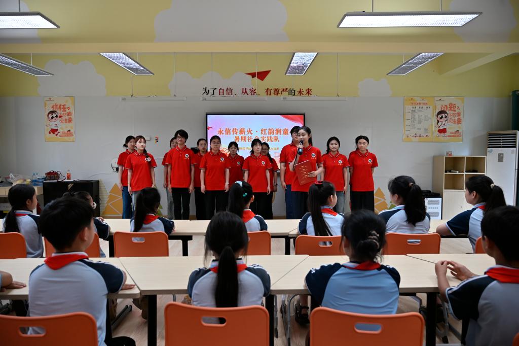 7月3日,洛阳师范学院党委宣传部联合马克思主义学院先后走进新安县铁门镇陈村小学、城关镇城关一小,通过党史问答、理论宣讲、情景育人和红色绘画等形式,开展“文艺+理论”红色文明实践活动。