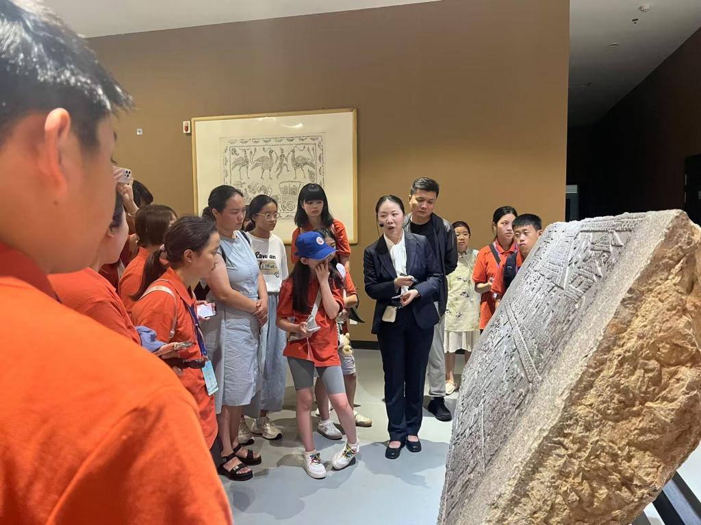 在研学导师带领下,华裔青少年走进学校河洛古代石刻艺术馆、洛阳汉画艺术博物馆、洛阳铲博物馆,近距离观赏墓志碑刻真迹、汉画像石,学习拓印石画像方法,详细了解中国古代石刻工艺、洛阳汉画艺术,观摩不同形制的“洛阳铲”,了解“洛阳铲”在考古中的重要作用,感受中华优秀传统文化的魅力,为华裔青少年呈现了一场盛大的“河洛文化”盛宴。